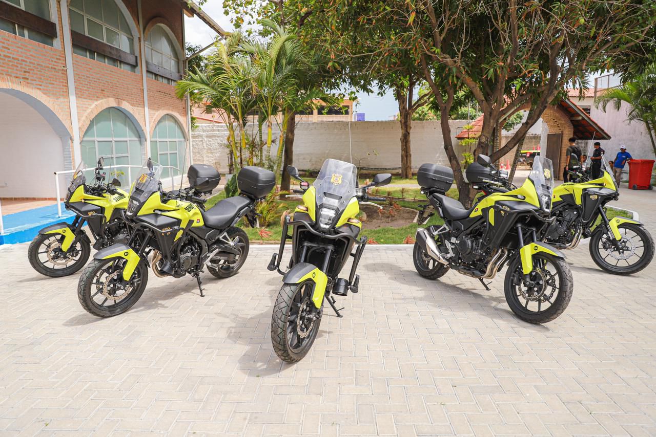 As motocicletas foram personalizadas com o padrão oficial (preto e amarelo-limão) e equipadas com giroflex e sirenes de alta potência, baús e protetores de carenagem, aumentando a visibilidade e a segurança operacional dos agentes.