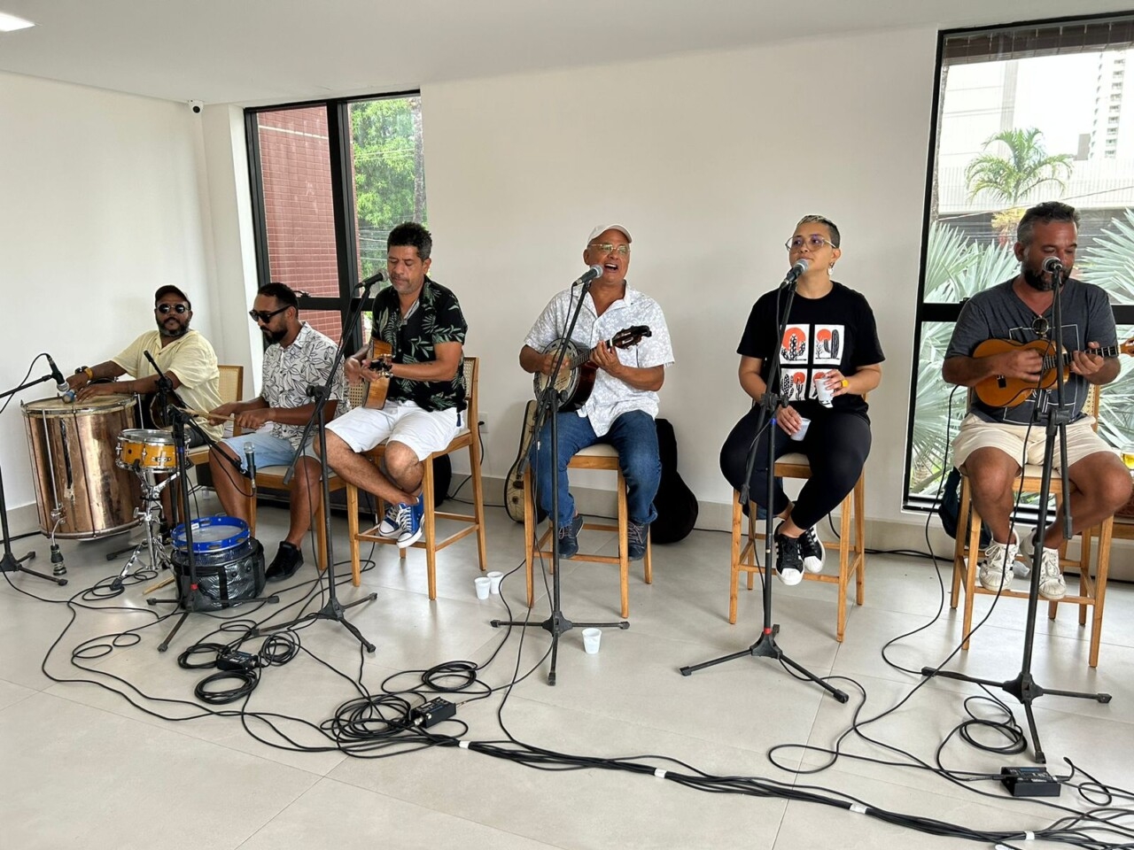 A animação ficou por conta da cantora Polyana Resende (@polyana.resende) e do cantor Kojak do Banjo (@kojak_do_banjo), que capricharam no repertório musical. O momento dos parabéns foi uma supresa à parte. A batucada, da Batukedo (@batukedo) de Natal, entrou na festa e cantou os parabéns para os aniversariantes.