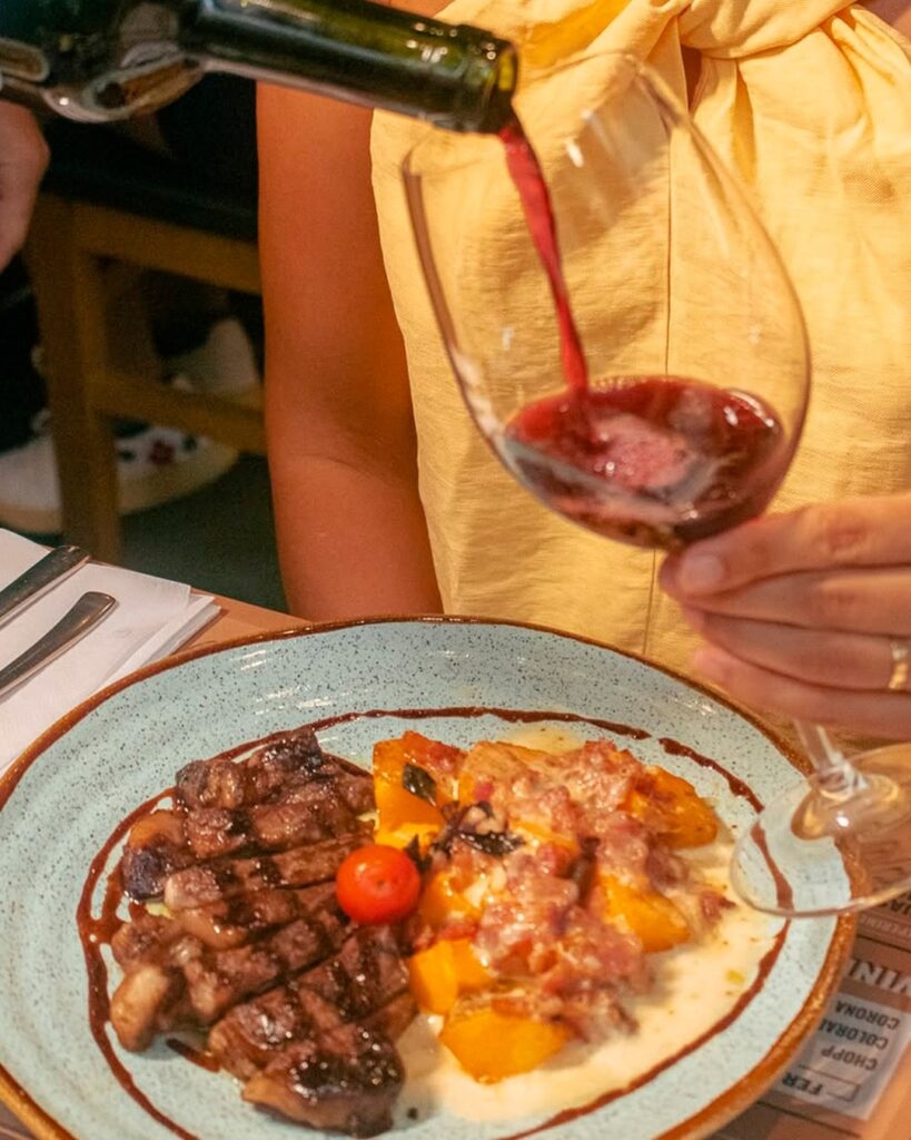 Com cebola caramelizada e chimichurri de vinho