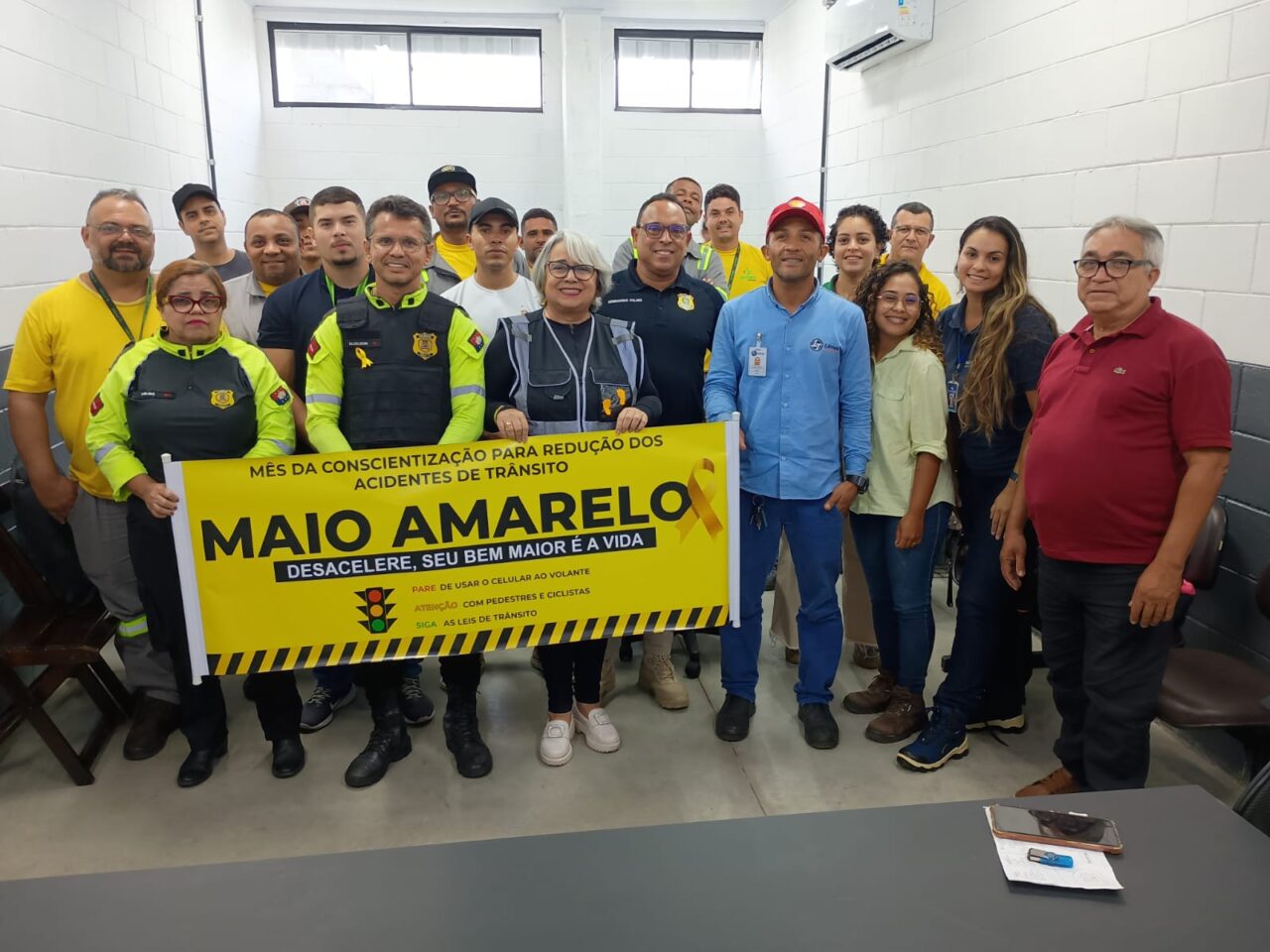 Em alusão ao mês do Maio Amarelo, Policiais Rodoviários Federais (PRF) e Agentes de Trânsito da Secretaria de Mobilidade Urbana de Cabedelo-PB, por meio da Coordenação de Educação para o Trânsito, realizaram nesta sexta-feira (30) palestras educativas destinadas a colaboradores da empresa Navegantes Logística Portuária e aos motoristas que atuam no PB Truck Center – Porto de Cabedelo, pátio onde é realizada a triagem de caminhões.