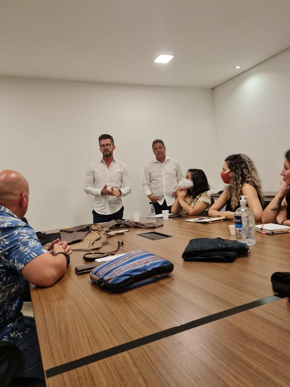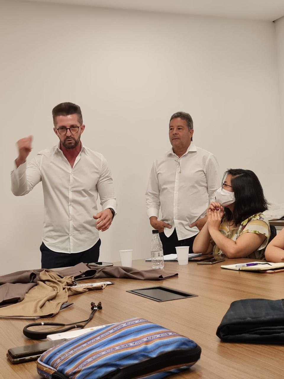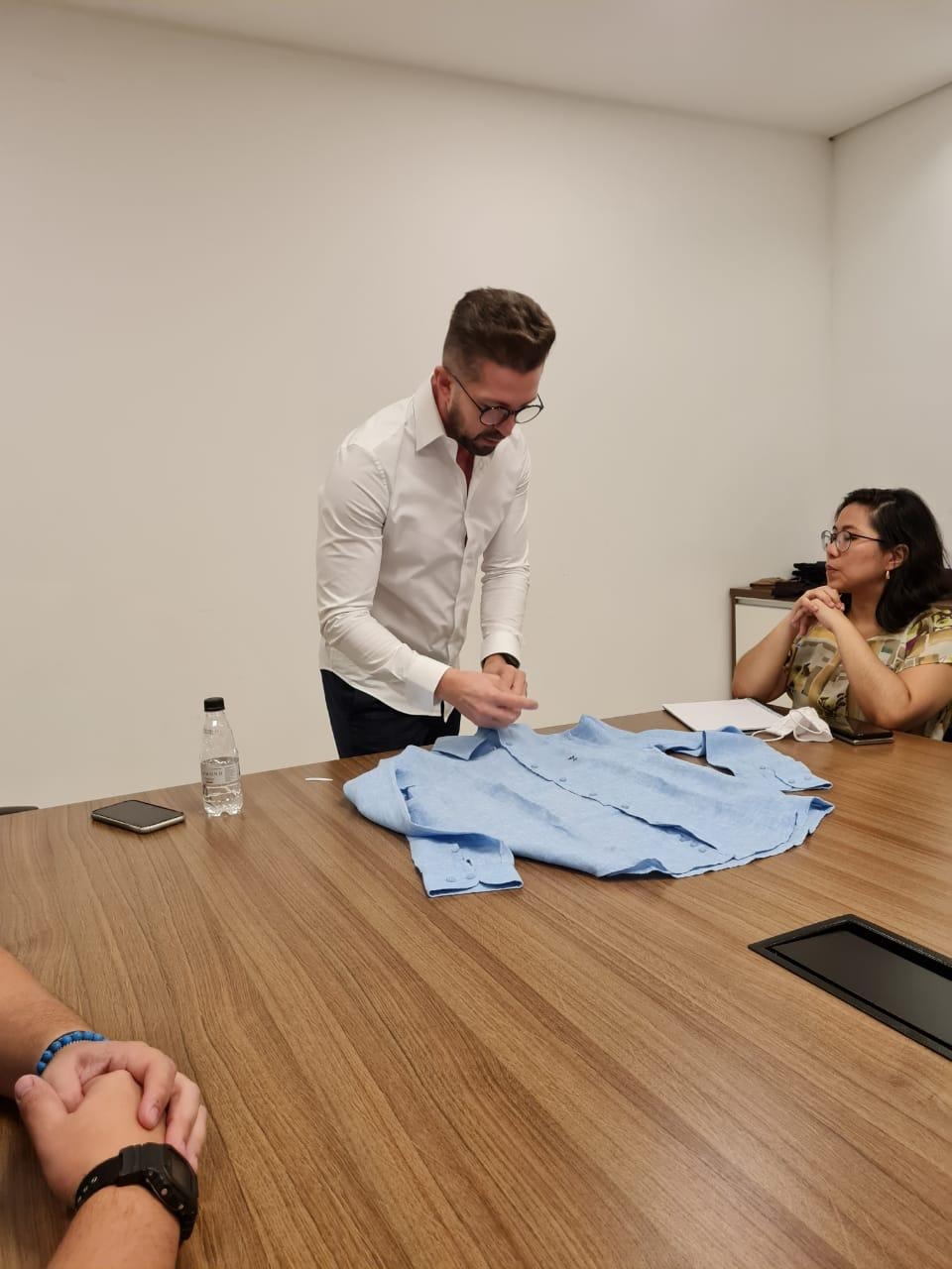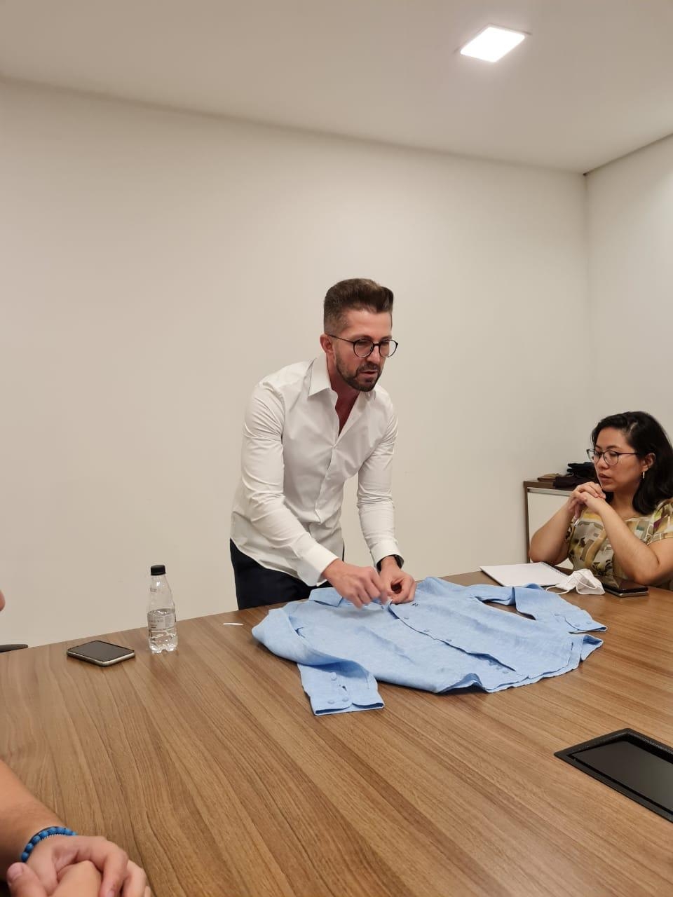Ele esteve esta semana em São Paulo com José Carlos, representante da Arrow no Estado, para conhecer a diretoria da marca no Brasil, a equipe de trabalho e a estrutura da empresa, com o objetivo de desenvolver um corte especial para a grife.